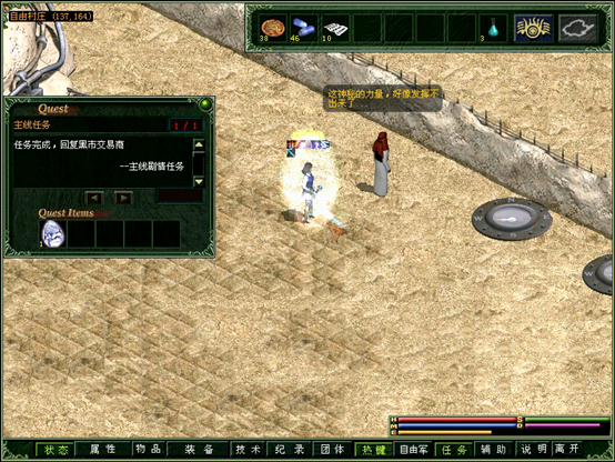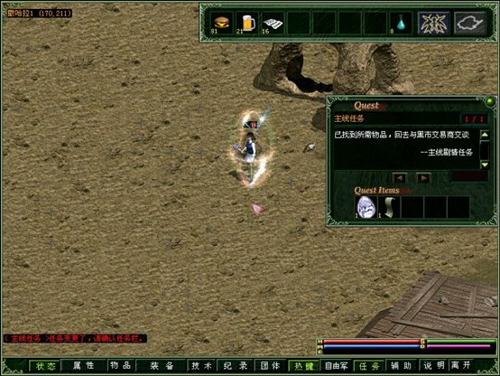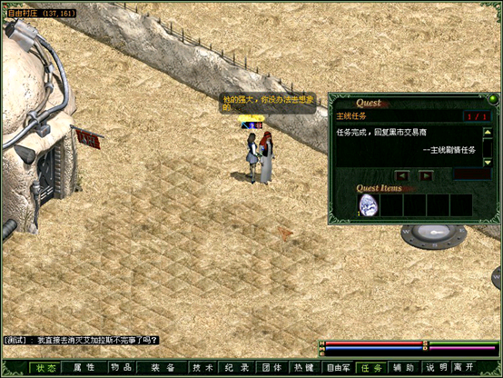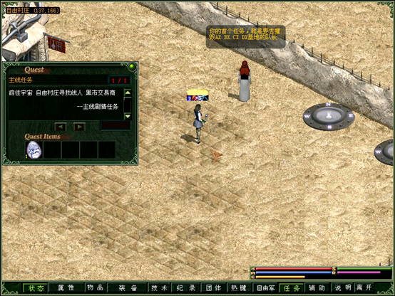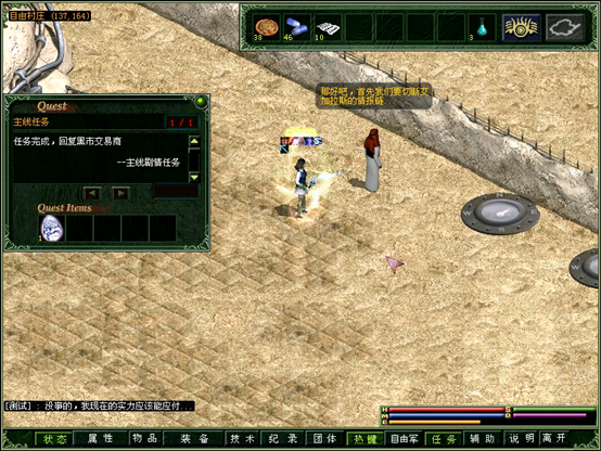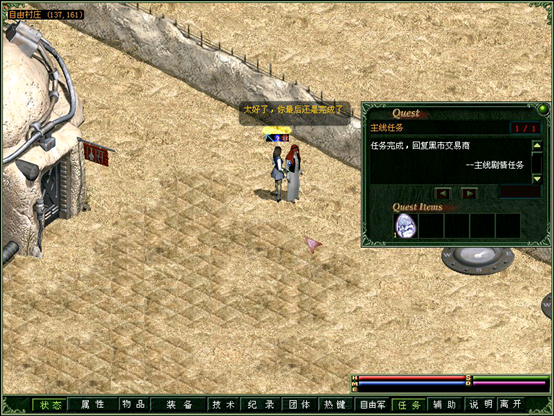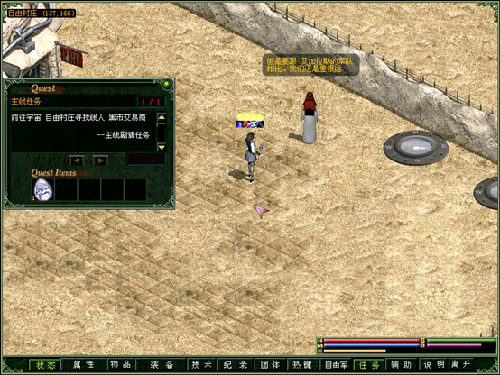 根据情报来源,找到沙漠1深处(坐标130.140)的黑市商人。被请求去做好人好事……