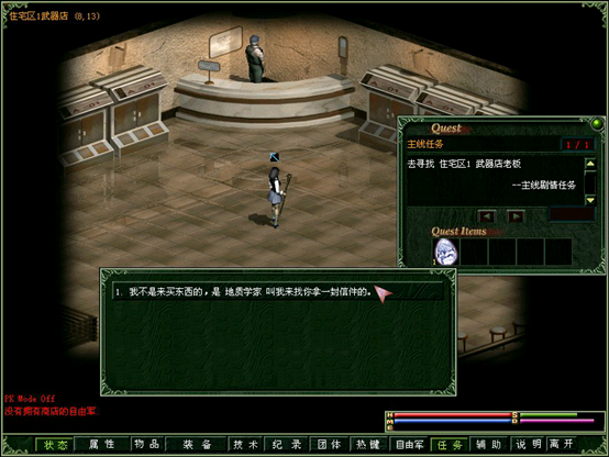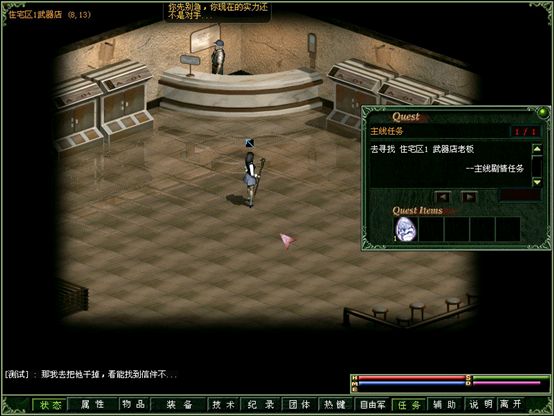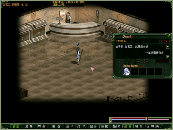 又来到住1武器店,被要求去杀掉机器人3(王)。