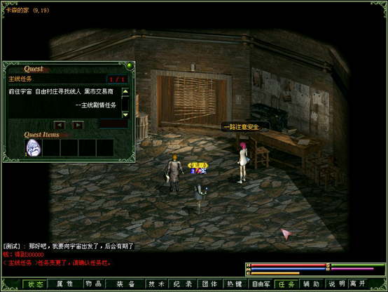 按照指引,向宇宙出发,到自由村寻找反抗组织的同伴(黑市商人)。