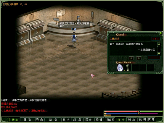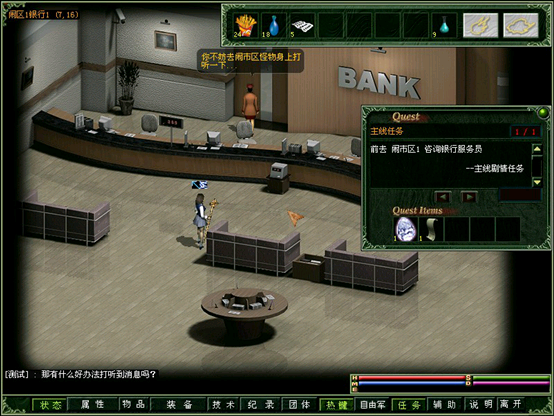 追寻信件来源,到达闹1银行听取建议并四处搜集情报。